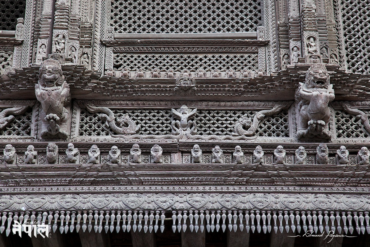Ahead of the main entrance, adjoining the Hanuman Temple, is the Nasal Chowk courtyard (‘Nasal’ means: “dancing one”) named after the image of dancing Shiva located on the east side of the square. This is the square where Birendra was crowned as king in 1975, on the platform in the middle of the courtyard. At the south side of the courtyard, stands the nine storey Basantapur Tower. While the courtyard was built during Malla Period, the buildings around it, which depict intricately carved doorways, windows, and struts, were creations of the Rana rulers. Nasal Chowk is a rectangular in a north–south direction with entrance from the northwest corner.