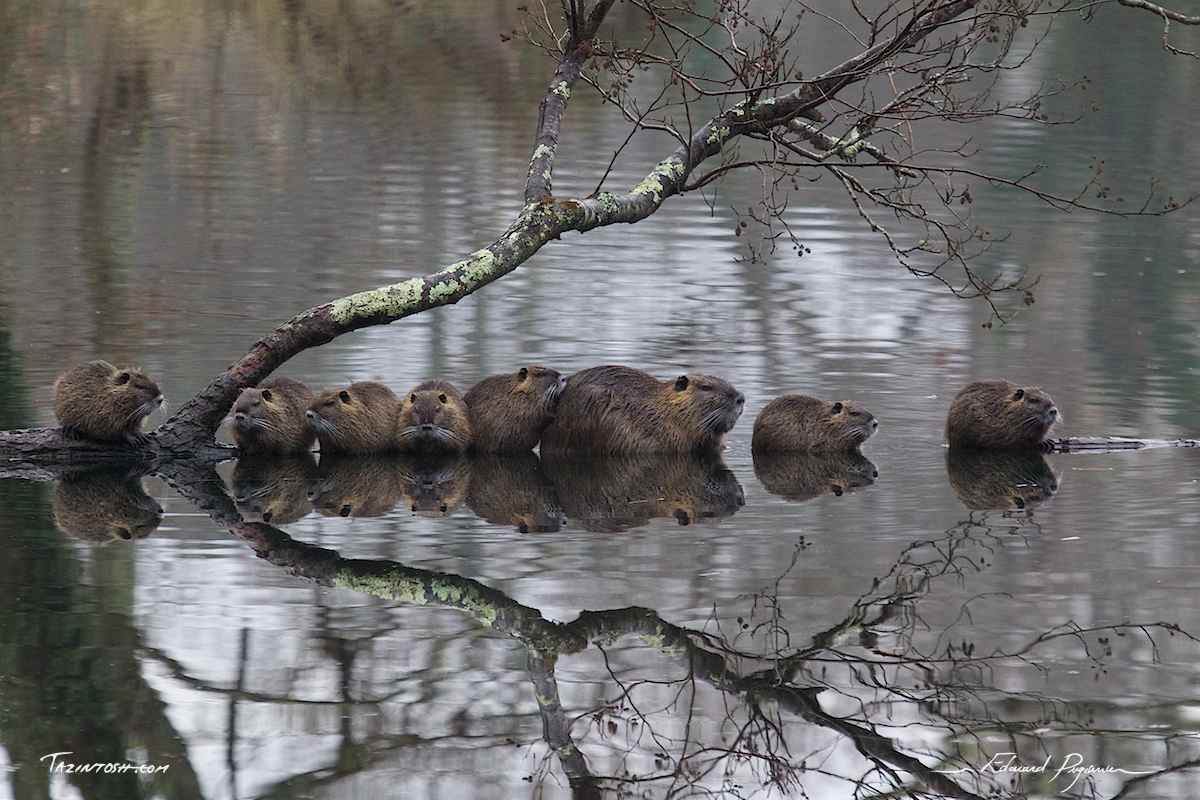 Je vous présente la famille « Ragondin ». Pas moins de huit phénomènes tranquilles et rapidement habitués à ma présence. De nouvelles photos de cette très agréable matinée suivront prochainement ! Here's the “Coypu” family. Almost eight little calm guys that rapidly felt ok with me. Multiple new pictures to follow!