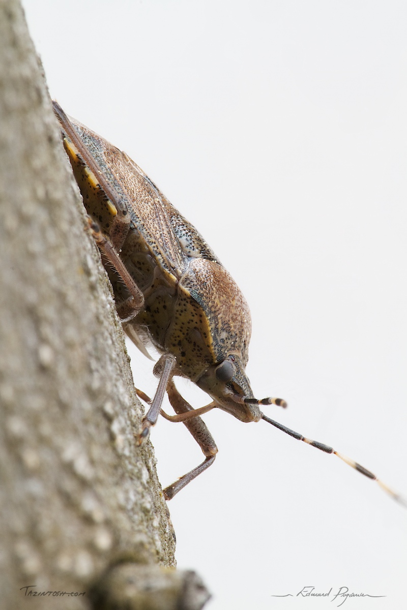 Vous avez dû remarquer que mon activité était relativement réduite ces derniers jours. Malheureusement, cela va continuer pour les trois semaines à venir, devant me déplacer en Allemagne pour travailler sur de futures (et prochaines) applications Mac. Tant que je le peux encore avant le départ mardi prochain, je vous poste ces deux images d'une punaise, réalisées lundi dernier. En réalité, il y a plus de deux clichés. Chaque image est le résultat d'un empilement de différentes mises au point.