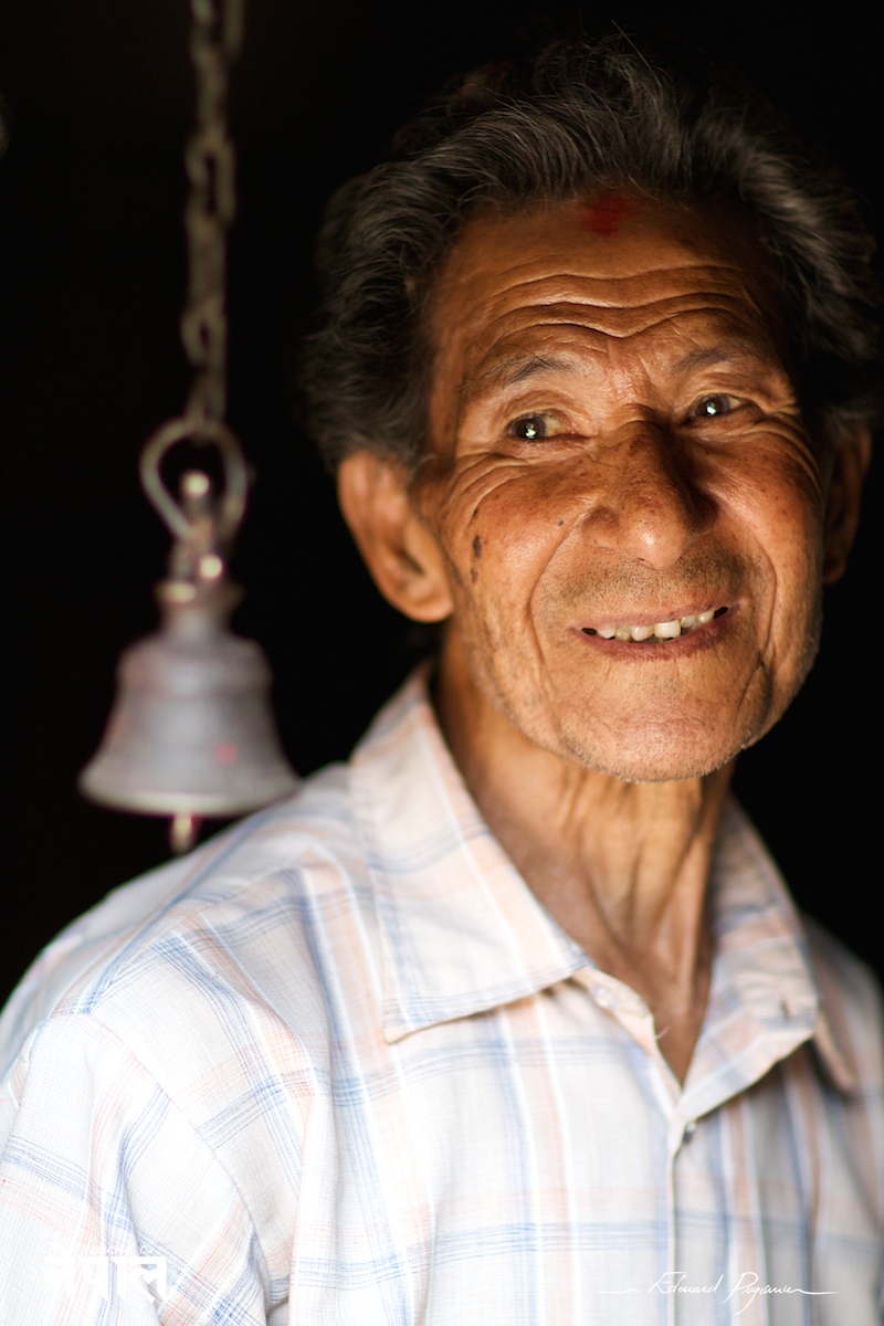 At the time those pictures where taken, Asti Man Bajacharya was in charge of a small temple next to the Bhaktapur Durbar Square. It's a “job” by 2, 3 years men rotation. At about 78 years old, he finished his “turn” of three years a few months after our visit and used to regularly do this job for many many years. A big thanks to Yolande Ashika, our marvelous guide on this area for the complementary informations about him (I'll dedicate her a small post soon).