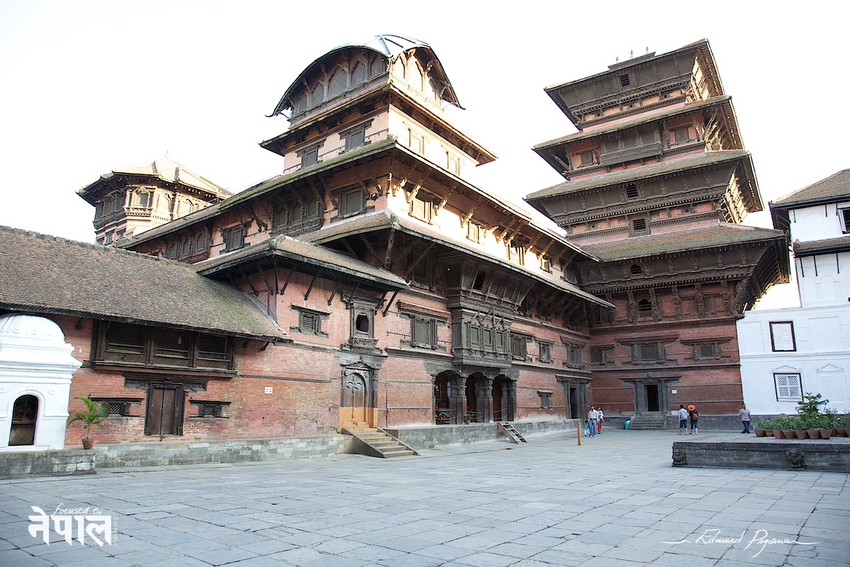 Hanuman Dhoka is a complex of structures with the Royal Palace of the Malla kings and also of the Shah dynasty in the Durbar Square of central Kathmandu, Nepal. It is spread over five acres. The eastern wing with ten courtyards is the oldest part dated to the mid 16th century. It was expanded by King Pratap Malla in the 17th century with many temples. Sundari Chowk and Mohan Chowk in the north part of the palace are both closed. In 1768, in the southeast part of the palace, four lookout towers were added by Prithvi Narayan Shah. The royal family lived in this palace till 1886, where after they shifted to Narayanhiti Palace. The stone inscription outside is in fifteen languages and legend states that if all the 15 are read milk would spring from the middle of stone tablet.