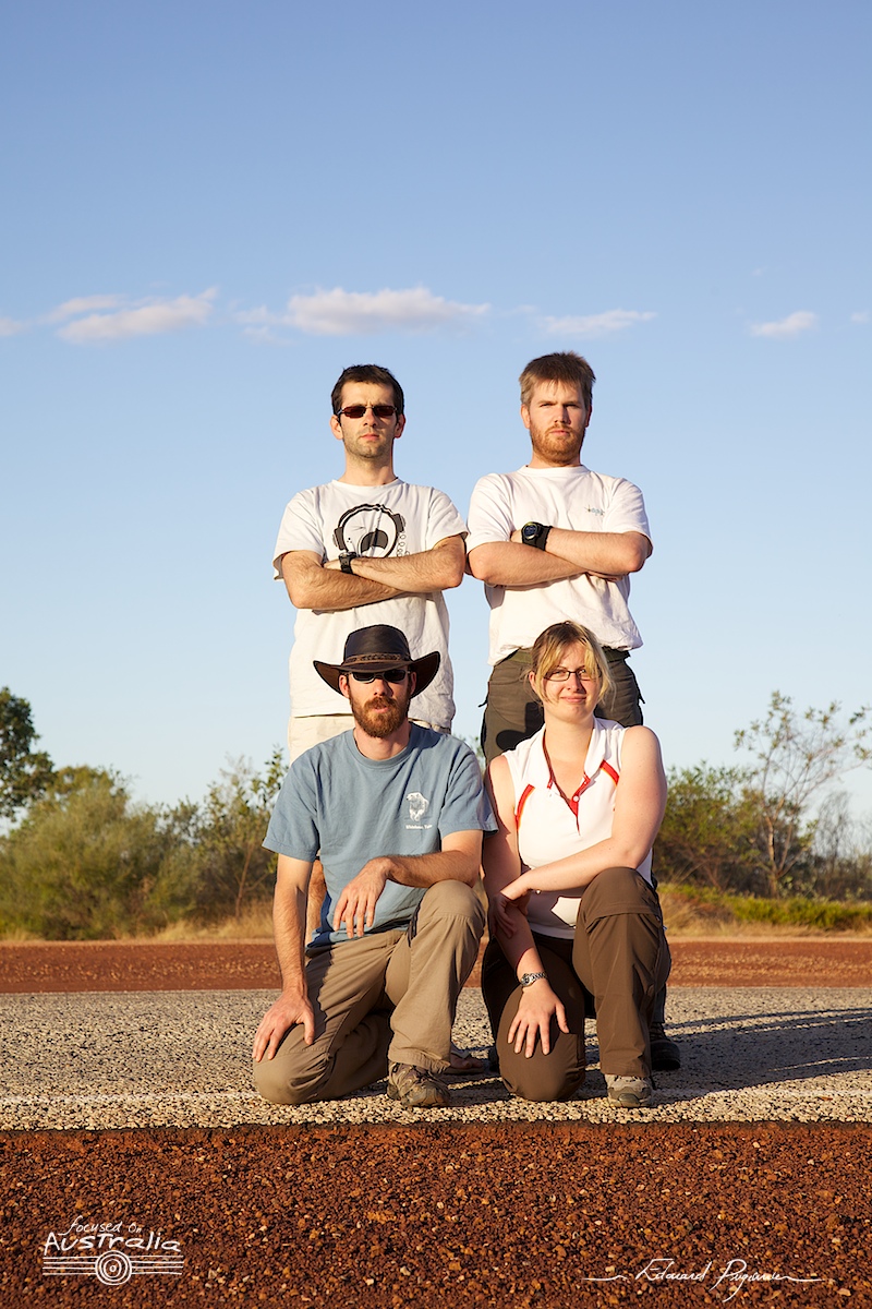 My Beloved Team 19 July 2013 Australia • Photography Before|After ComparisonCanon EF 100-400mm f/4.5-5.6L IS USMCanon EOS 5D Mark II Share Twitter Facebook Pinterest Tumblr Google+ Here is the small team of our previous trip to Australia. Small, but the most wonderful, with Lionel and Yannick, friends that should all just be my brothers. Starting from the bottom, left to right: Yannick, Marion, Lionel and me.