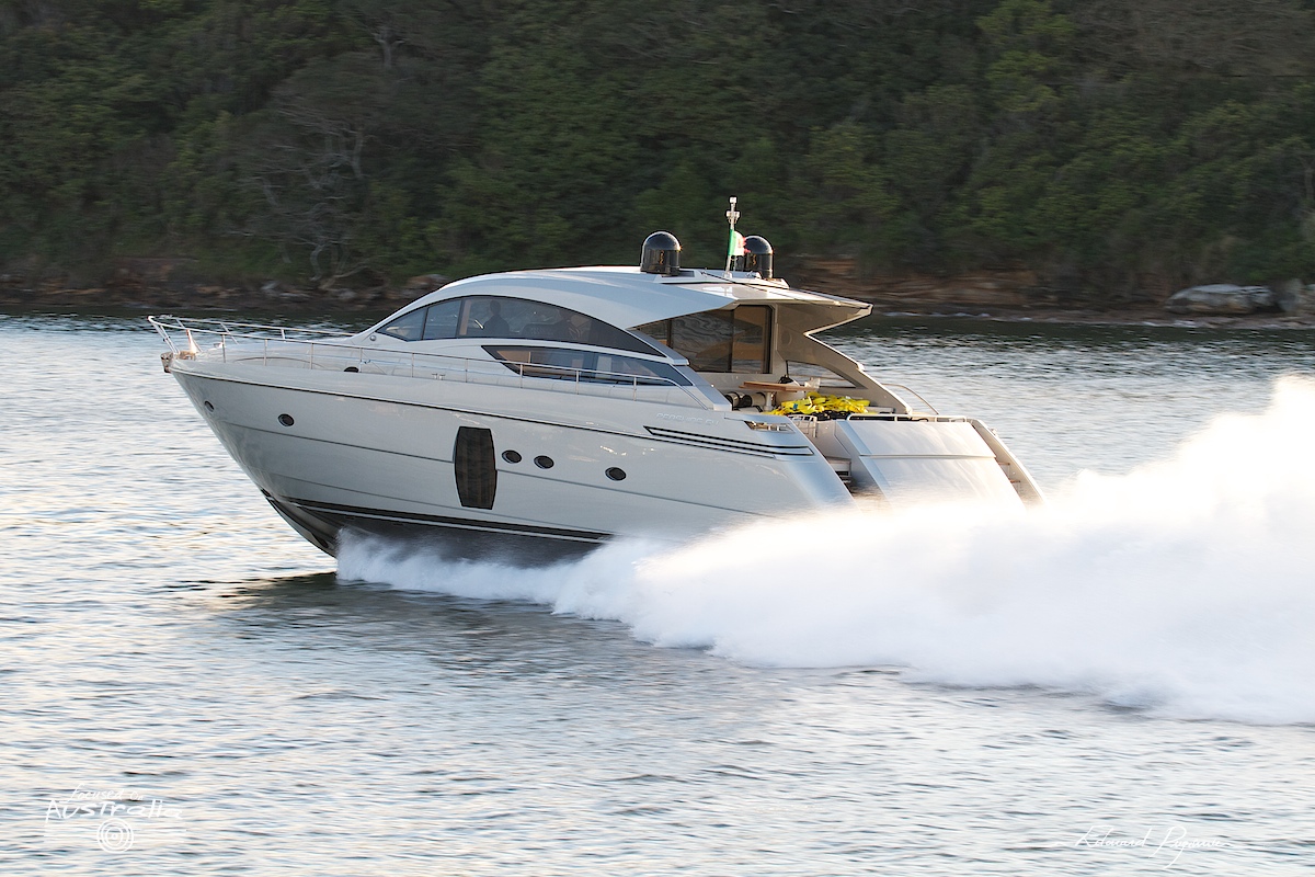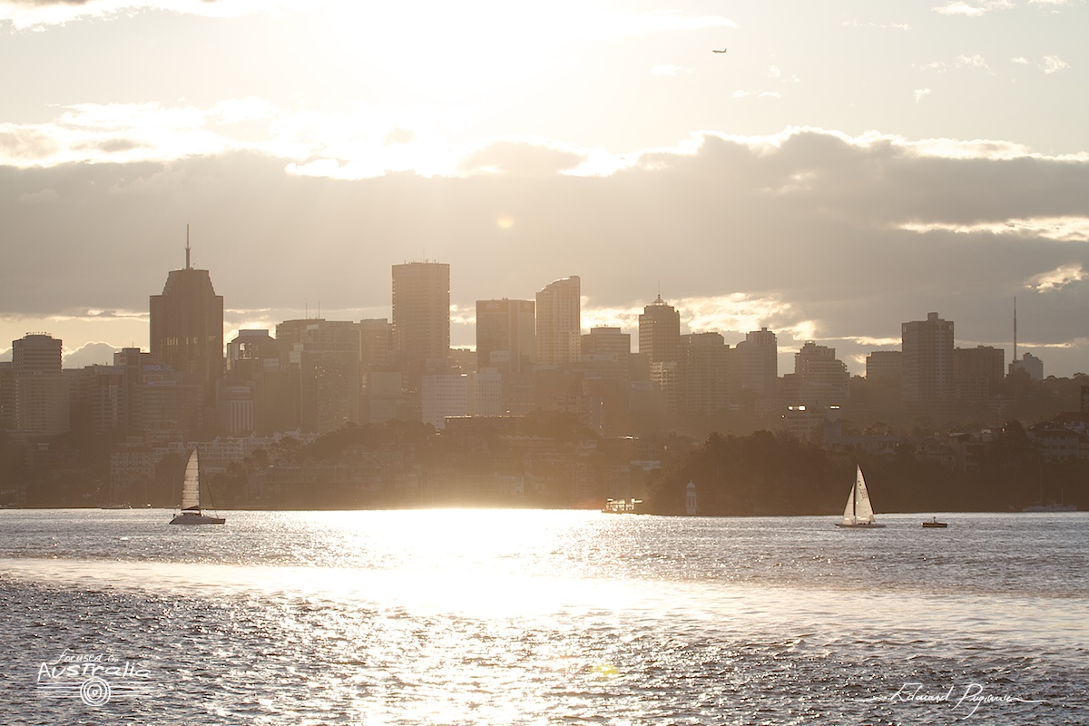Back from half a day in Manly. The boat is going straight to Sydney, full West and I take this picture. Note the strange effect on the water surface caused by this little speedy boy (see below) — arf! —.
