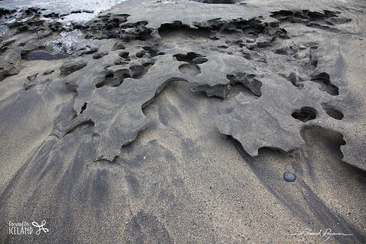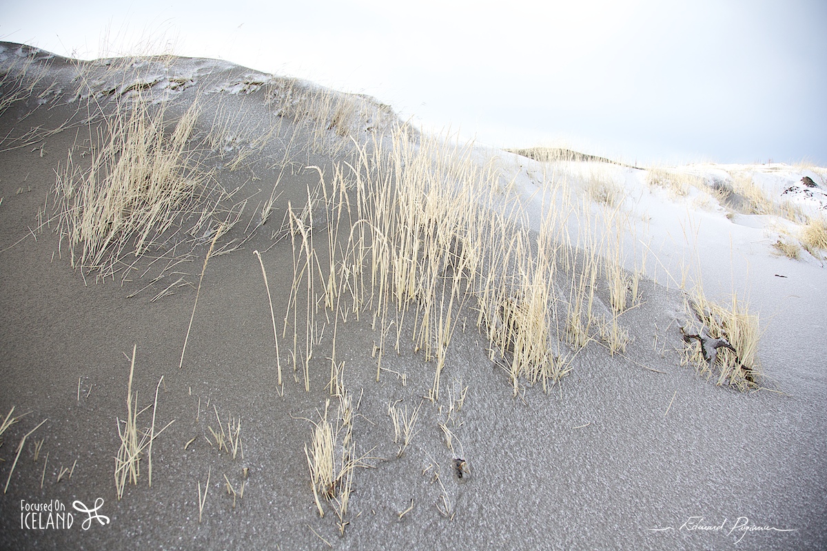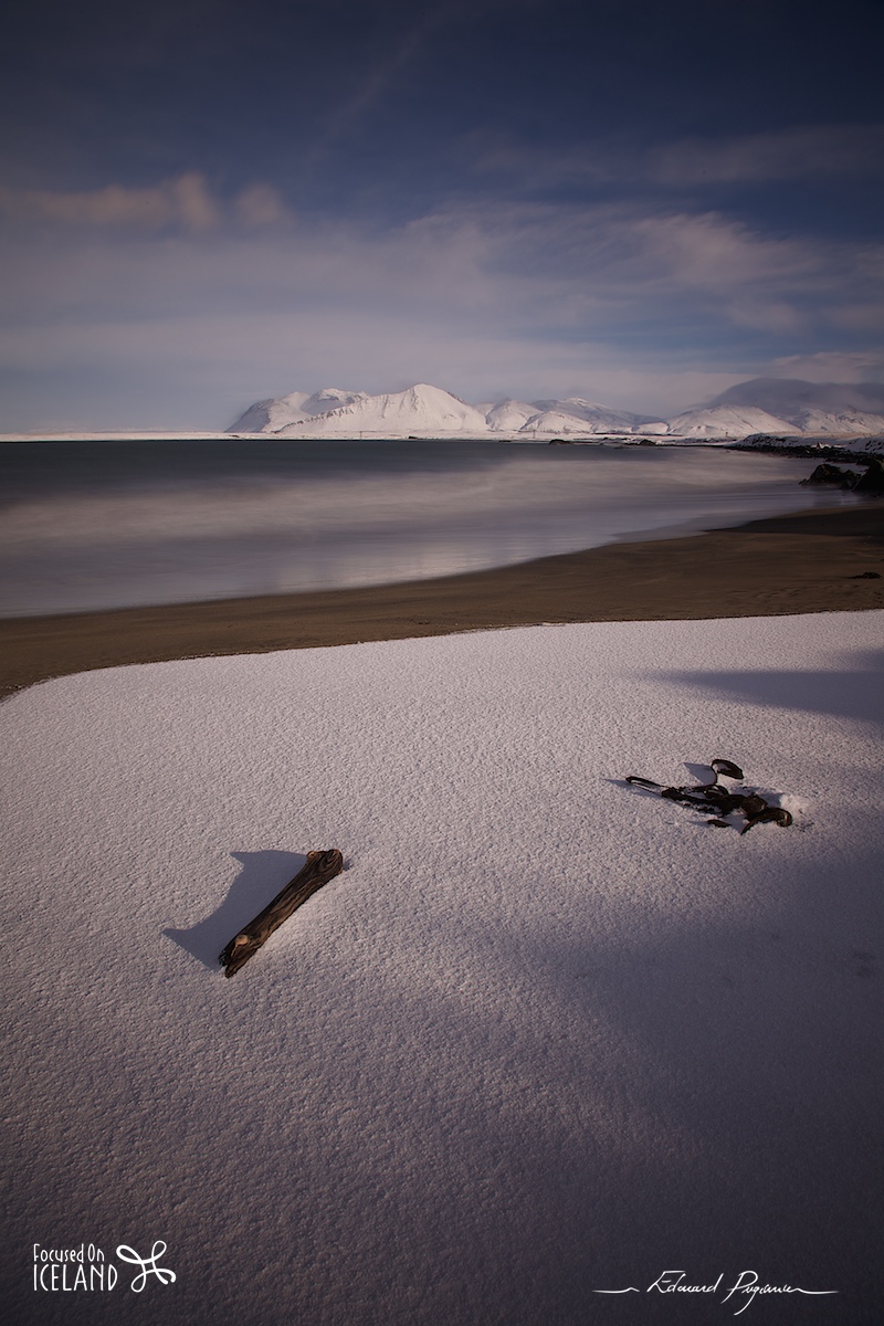 Stroll towards Akranes. Sixteen photos in total, the first three with the Before|After comparison to give an overview of applied processing to each type of photo. One the first (before adjustment such as 5 and 6), you'll notice the typical red shift of —neutral— filters (or supposed to be…). This detour was very nice, with beautiful sand sculptures, unusual gradients of snow and sand, etc.