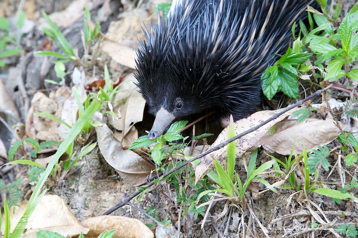 We made as soon as possible to avoid further disrupting this little guy (although he did not seem to care about us). So the photos (and video) are bad, but it will give you an idea. As for the scale, it should be within 25-30 cm long. We met it as we walked along the road, we were comforted to see it climbing the ditch to reach the forest rather than attempt a crossing of the road (perhaps he had just done… :/).The short-beaked echidna (Tachyglossus aculeatus), also known as the spiny anteater because of its diet of ants and termites, is one of four living species of echidna and the only member of the genus Tachyglossus. The short-beaked echidna is covered in fur and spines, and has a distinctive snout and a specialized tongue, which it uses to catch its prey at a great speed. Like the other extant monotremes, the short-beaked echidna lays eggs; the monotremes are the only group of mammals to do so.