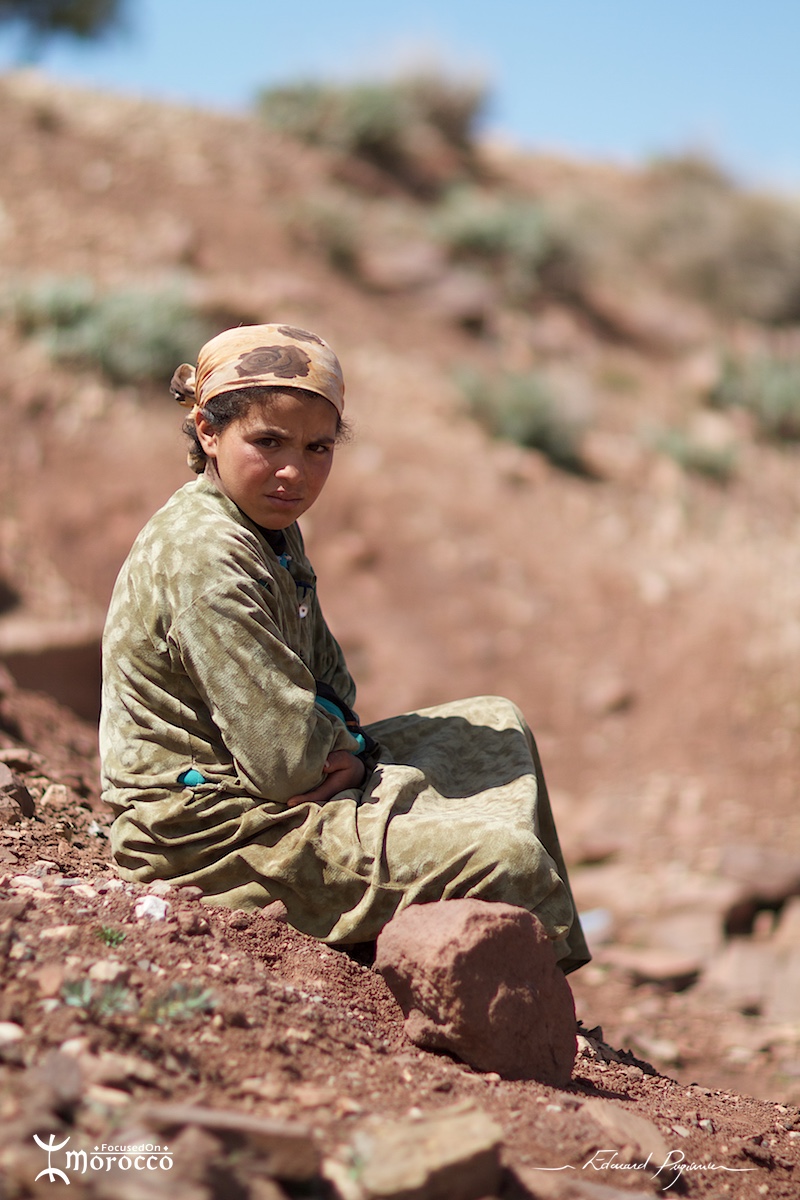 Lors de notre arrêt pour déjeuner en bord de route (premier jour), je suis allé à la rencontre de Malika, jeune bergère.
